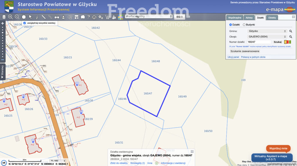 ewidencyjnym 160/47, położona w obrębie Gajewo, gmina Giżycko,